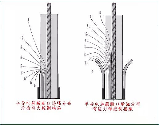 在進(jìn)行電纜終端和對接頭制作中都有處理半導(dǎo)體屏蔽層,這是接頭質(zhì)量的關(guān)鍵。此處是場強突變的部位,如果處理工藝水平不高,投入運行后對絕緣造成損傷,嚴(yán)重的情況在竣工試驗中就會發(fā)生擊穿。