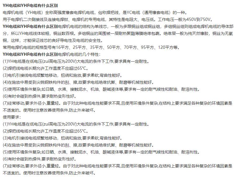YH和YHF的主要區(qū)別在護套材料...YHF的護套材料比YH要求更高...機械性能更好..