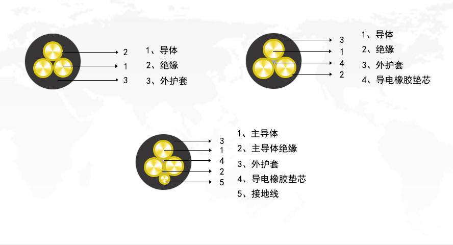 橡套電纜不僅結構簡單、使用方便,而且還具有優(yōu)良的電氣絕緣性、物理機械性、耐燃燒性、耐化學性、耐沖擊力、耐磨性、防潮性。電纜的長期允許最高工作溫(60℃),電流傳輸容量大。